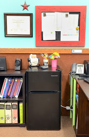 I super big, pink puffy heart love my fridge. My classroom is a mile away from the faculty lounge and the bathroom, and I need my ice.